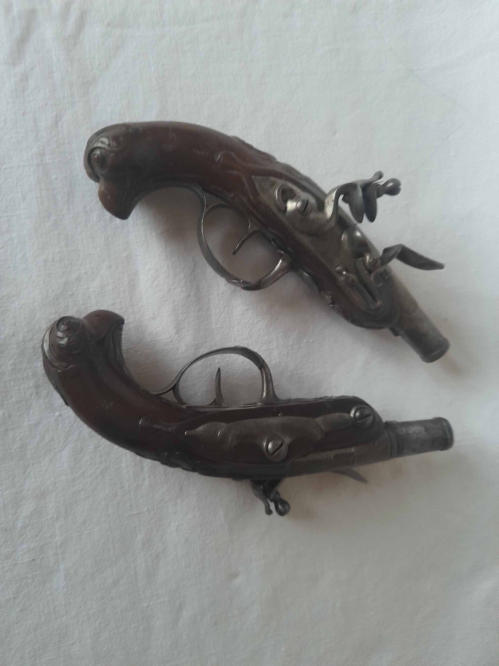 Petite paire de pistolets a silex de carrosse ou de poche signé « lamotte »